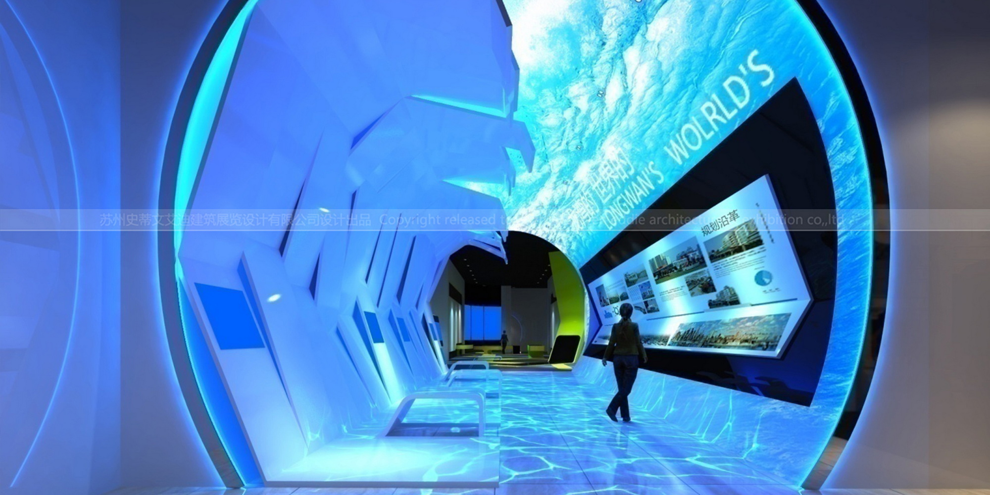 合理设置参观动线,解决多空间干扰和多通道出入口问题,以珠串式故事线为引,让参观者全面了解创新的产业和技术。